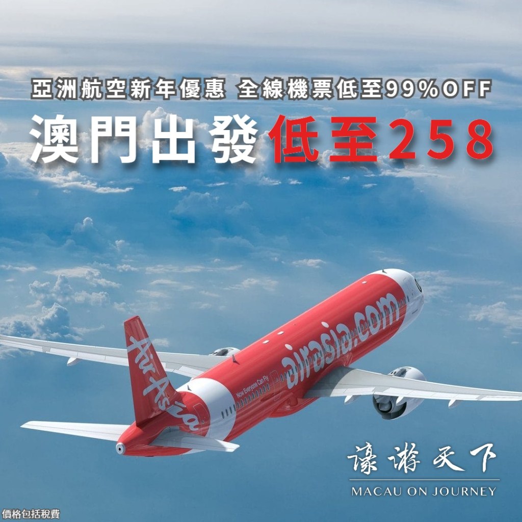 亞洲航空現正推出新年優惠,全線機票低至99%OFF!澳門出發低至澳門幣258元!