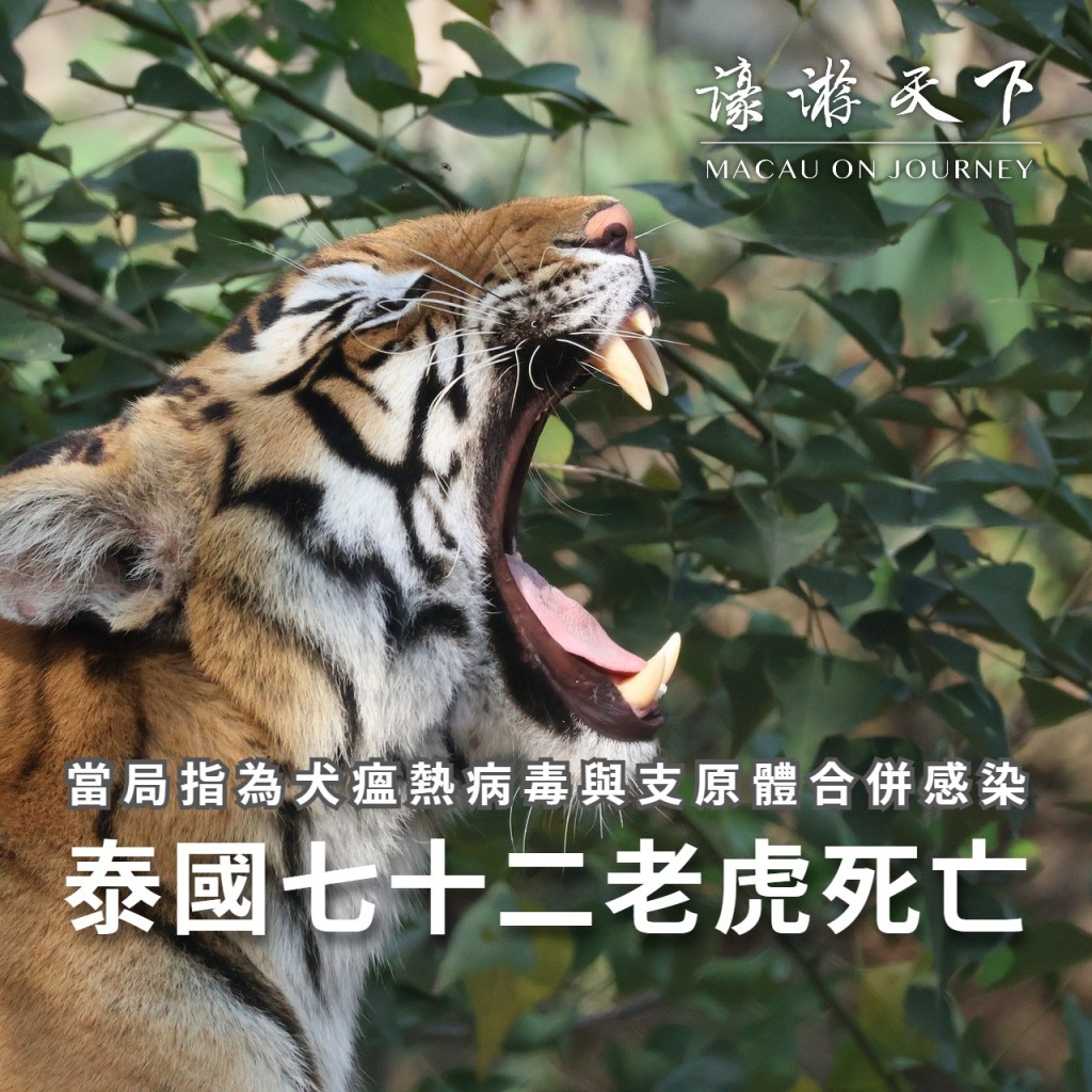 泰國清邁兩個老虎園區本月有七十二隻孟加拉虎集體死亡。當局昨日通報指,是犬瘟熱病毒與支原體合併感染導致。