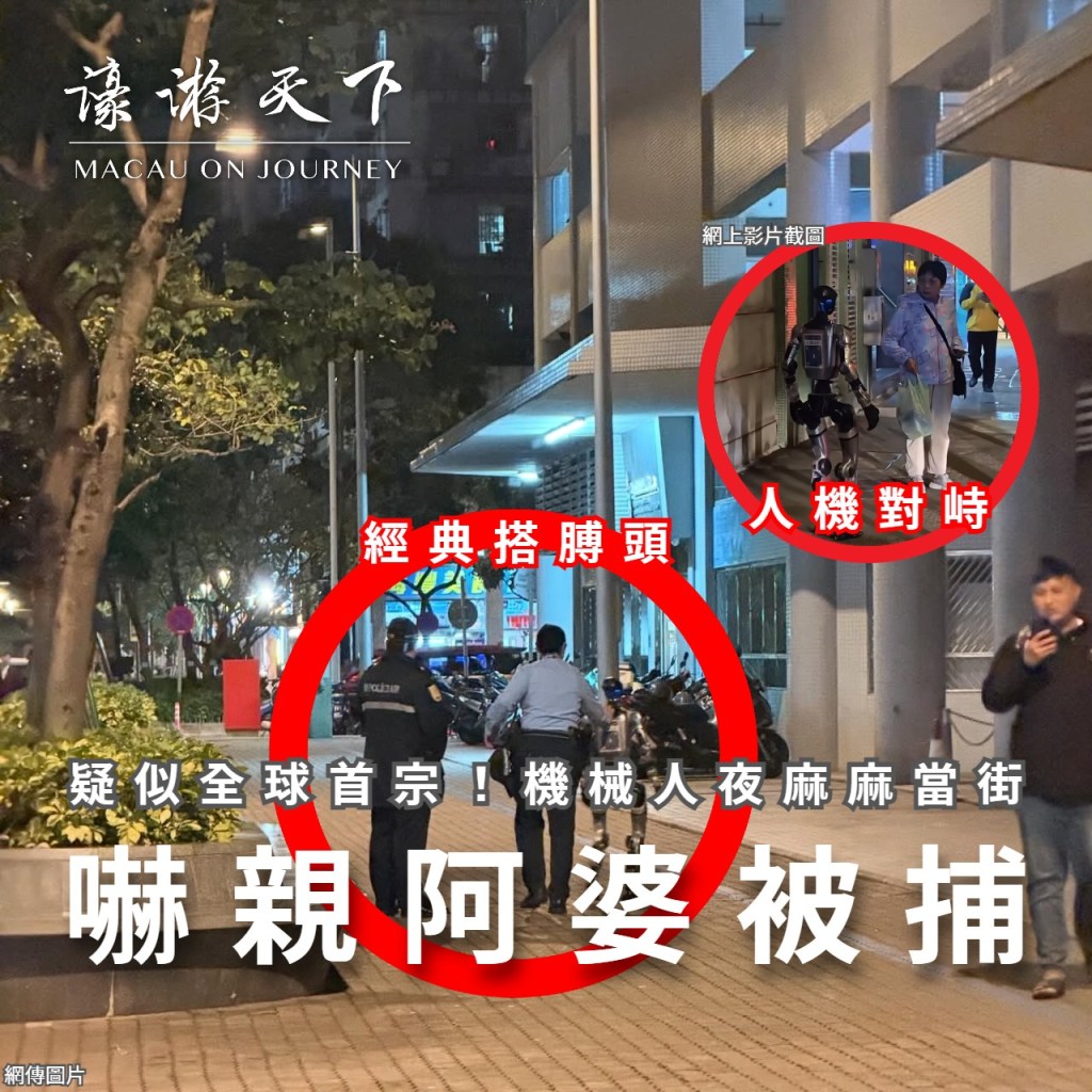 今年內地央視春晚,一段機械人舞蹈表演驚豔全球!不過在澳門,機械人卻引起市民恐慌!網上昨日流傳,一名女長者晚上疑似被一件機械人當街嚇倒,對著機械人發脾氣回擊。結果機械人被警方「拘捕」。