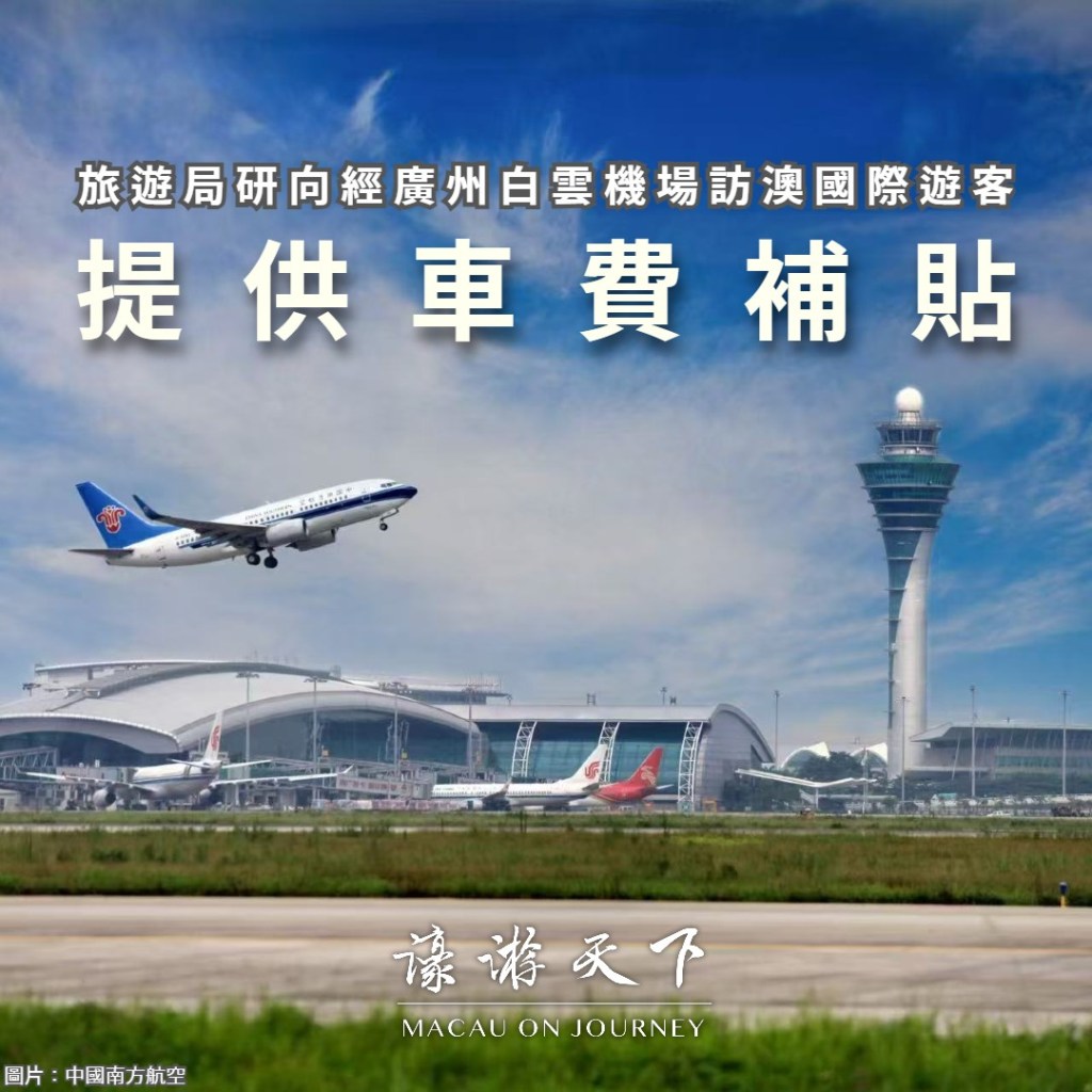 繼續閱讀 旅遊局研向經廣州白雲機場訪澳國際遊客提供車費補貼 →