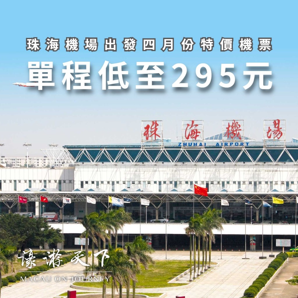 四月份是國內旅遊淡季。珠海機場出發四月份有特價機票,部份目的地單程低至人民幣295元!