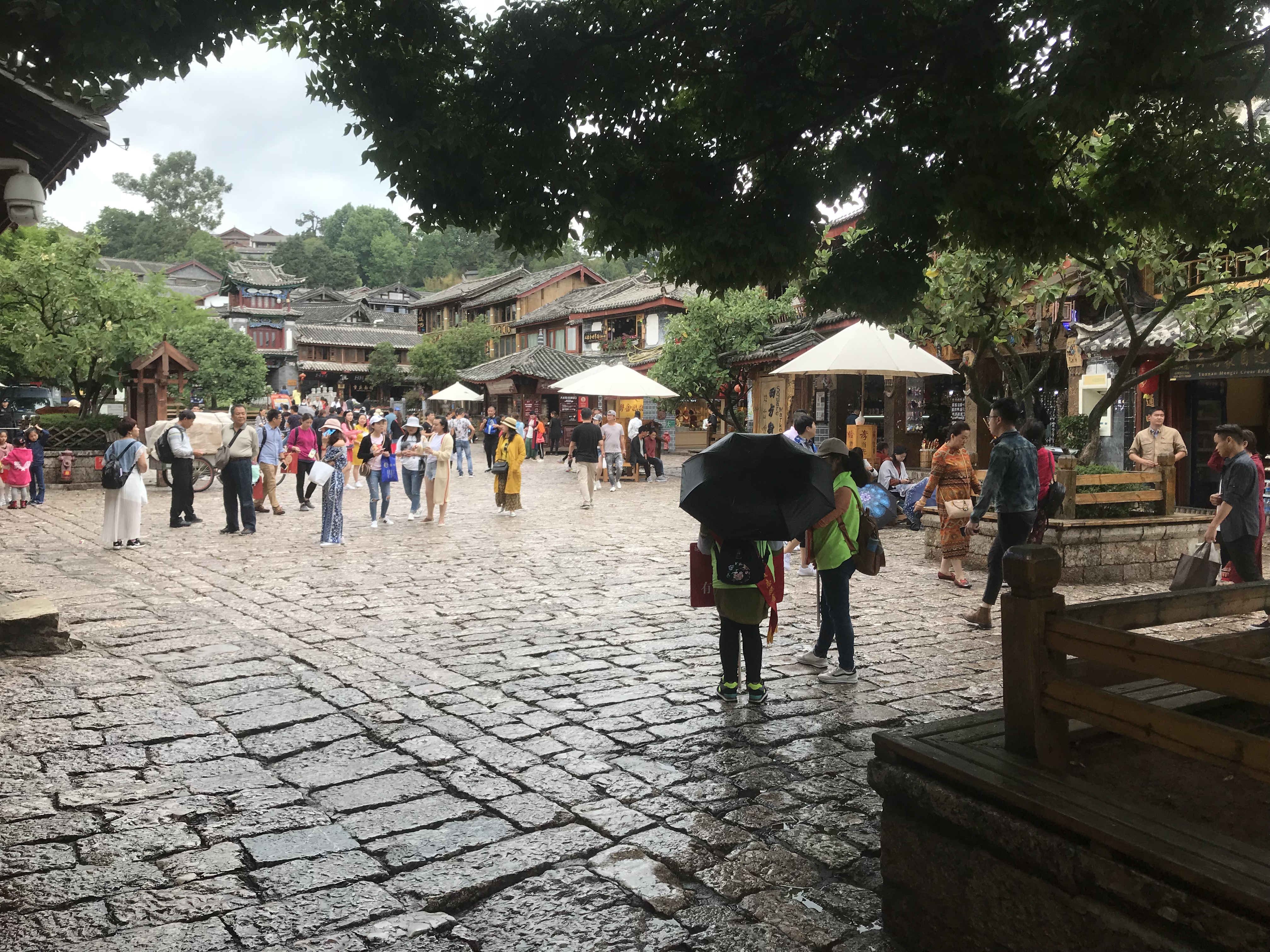 麗江古城是中國唯一沒有城牆的古代城市,人們因地制宜、以開鑿護城河作自我防衛為一大特色。自一九九六年遭到地震襲擊以來,忽然成為世人嚮往的地方,但也成了商業化的典型。古城與現代化的商業街只有一街之隔,澳門所強調的緩衝區幾乎不存在。即使是古城內,也是各種為旅客服務的商店、餐廳和酒吧,倒是小橋流水、鮮花垂柳,在高原之上、雪山腳下竟有如此一抹溫柔婉約,還不負「高原姑蘇」之名。