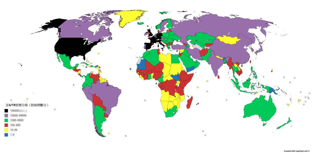 西班牙確診病例累計198674宗、21238死。義大利累計175925宗確診病例,另有23227人死亡。法國175942宗、19718死。德國145184宗、4586死。英國120067宗、16060死。