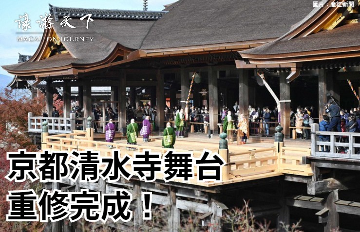自2017年起進行維修嘅本堂終於喺尋日(3日)正式完工啦!除咗更換絲柏樹皮屋頂之外,舞台以絲柏木建造嘅地板同欄杆亦都進行咗替換。