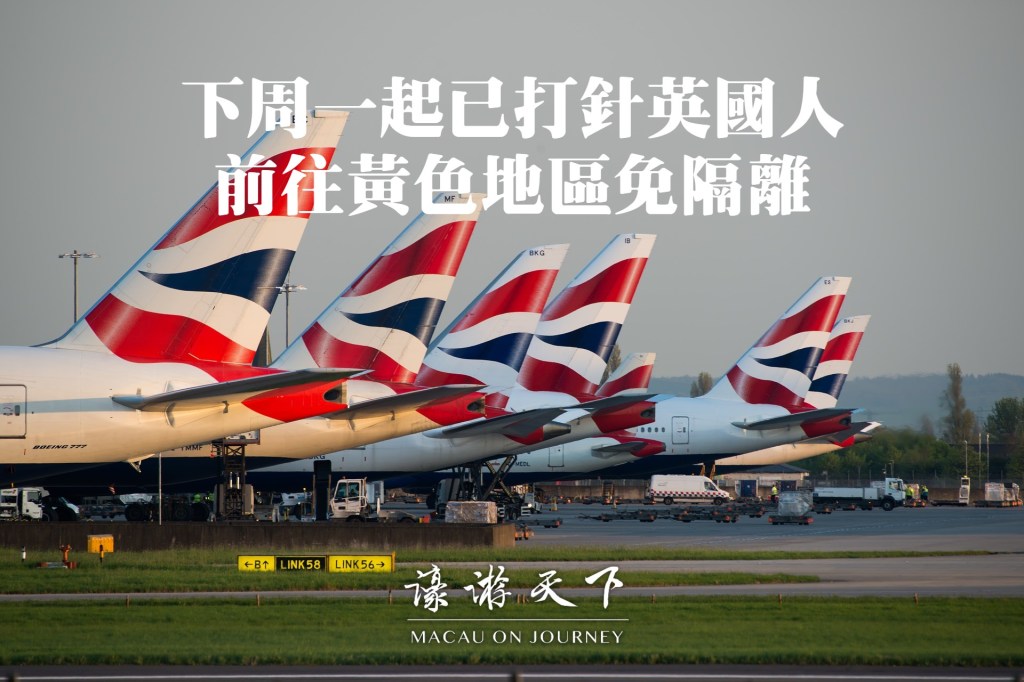 已經完成疫苗接種的英國人,下星期一(7月19日),即在英格蘭預計解除餘下防疫措施的同一日開始,可以前往黃色級別地區,回國後無需隔離。