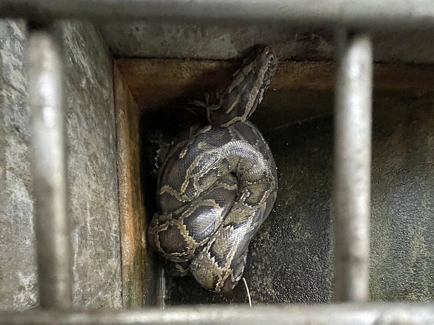 市政署黃昏發出新聞稿,表示下午接獲消防局通知,於九澳堤壩馬路山坡一工地發現一條蟒蛇。市政署人員即時到場跟進並成功將蟒蛇捕捉。經測量被捕捉的蟒蛇體長約三米,為澳門原生最大的蛇類。經檢查蟒蛇健康狀態良好,無表面傷痕,考慮此蛇的體型較大,不宜野放,將由市政署管護飼養。