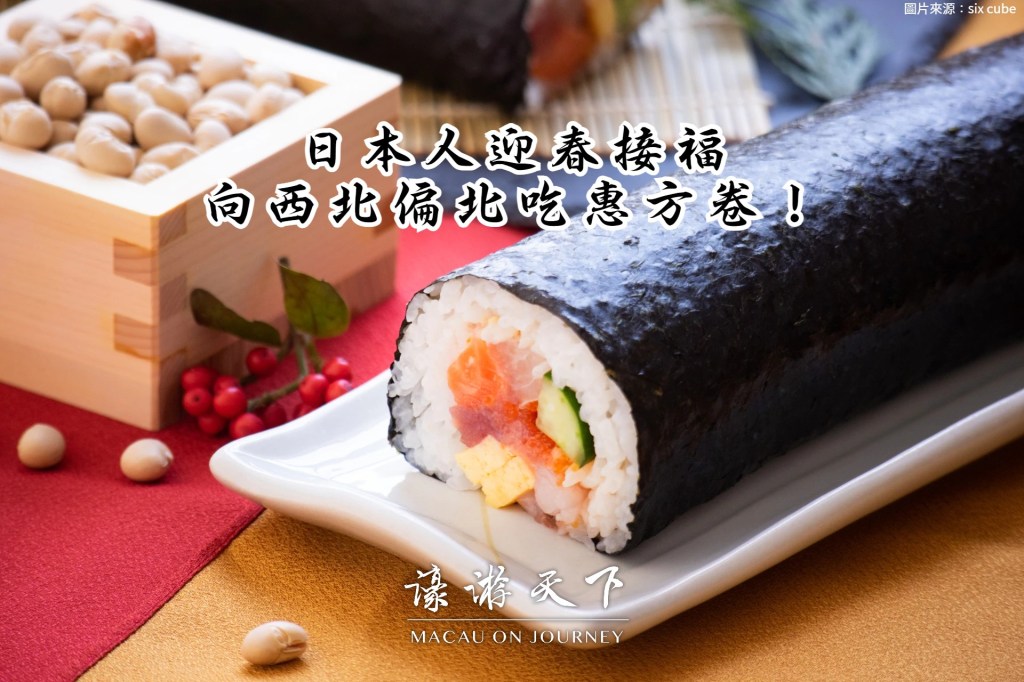 日本人在「節分」除了大家熟悉的「撒豆驅鬼」習俗外,還要面向特定方位,完整吃下一整條「惠方卷」,意思是把福氣接收不間斷,以祈求來年大吉大利。