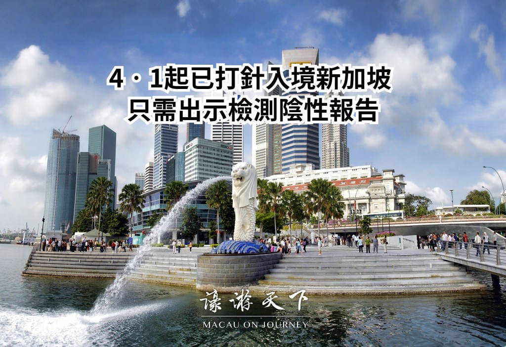 新加坡政府對入境政策進行重大調整,4月1日起所有已接種疫苗人士,以及12歲及以下兒童,入境新加坡只需出示出發前兩日內進行的病毒檢測陰性報告。