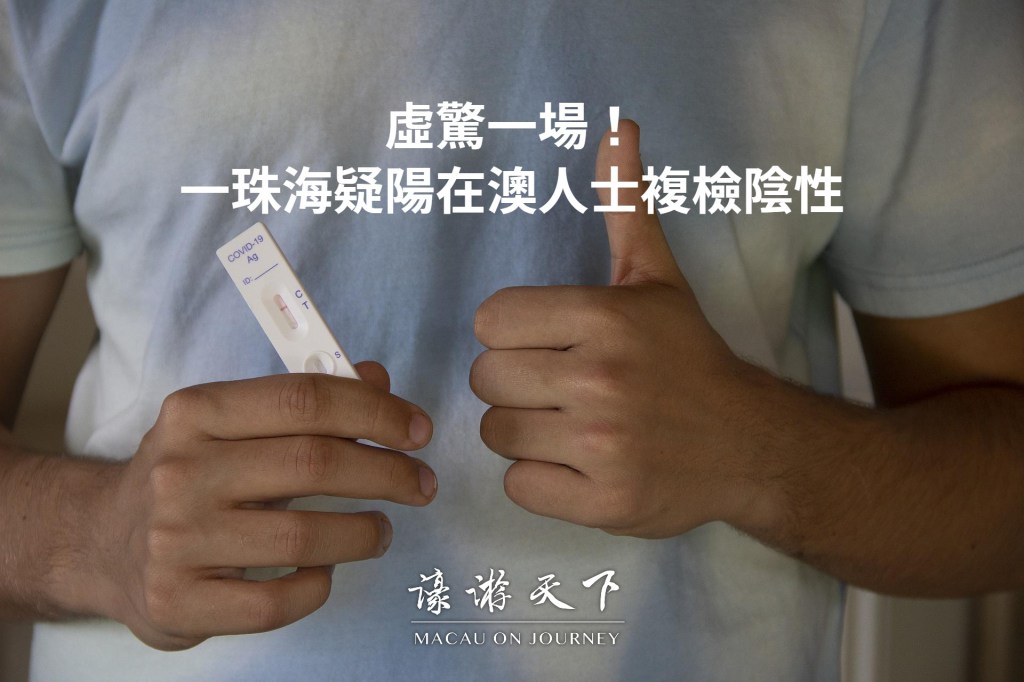 新型冠狀病毒感染應變協調中心凌晨發出新聞稿表示,衛生局昨日接獲珠海市衛生部門通報,一名在珠海市核酸檢測結果疑似陽性的人士身處澳門。衛生局隨即聯絡該名在澳人士,經複查的單檢樣本結果為陰性。