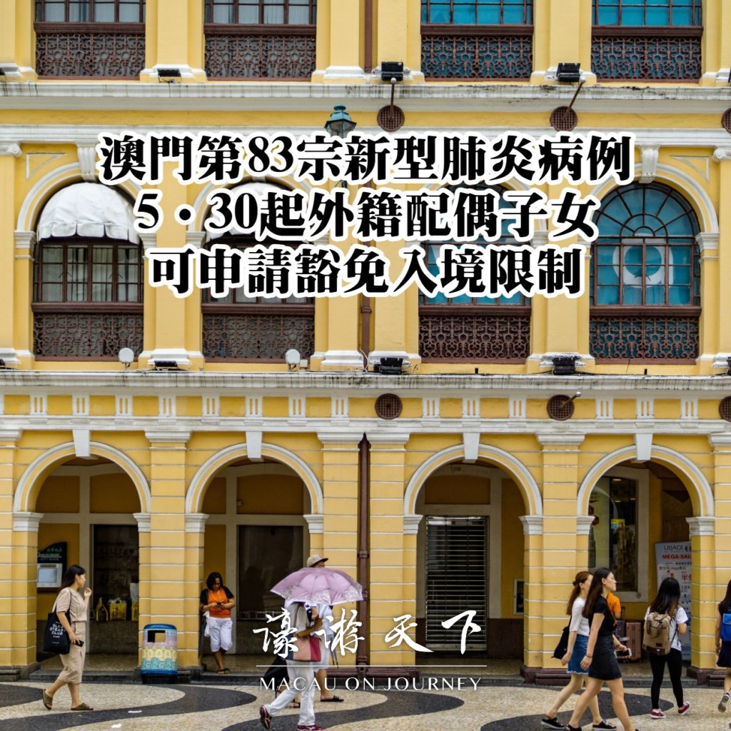 政府又宣佈,5月30日起開放本澳居民的外籍配偶及未成年子女申請豁免入境限制。同時擴大家傭豁免入境限制先導計畫至所有國籍外僱。