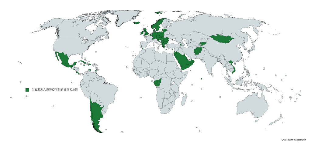 至今全球已經撤銷入境防疫限制的國家和地區,分別是: