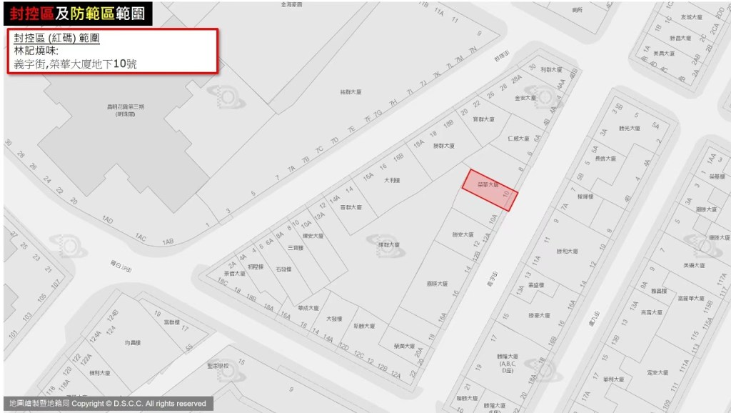 截至今日凌晨零時,全澳新增兩個紅碼(封控)區,分別是南灣羅飛勒前地(燒灰爐口)16-18號湖景花園,以及義字街40號地下林記燒味。全澳至少有八個封控區,黃碼(防範)區維持在五個。