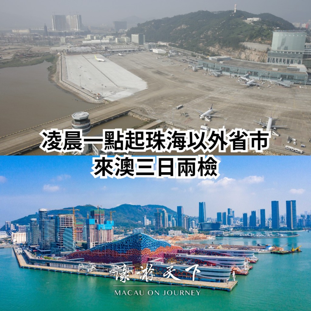 新型冠狀病毒感染應變協調中心宣佈,因應內地的疫情變化,衛生局根據第2/2004號法律《傳染病防治法》第10條和第14條的規定作出本公告。自2022年8月9日凌晨1時起,擬乘坐飛機、船隻直接由中國內地(廣東省珠海市除外)到澳門特別行政區的人士,須持有採樣日或之後7天內新型冠狀病毒核酸檢測陰性證明才可登機或登船;入境澳門特別行政區後須即時接受1次免費的核酸檢測,並在其後的2天內再自費接受至少1次核酸檢測。其他防疫措施不變。