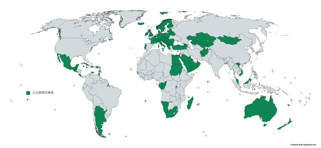 至今全球已經撤銷入境防疫限制的國家和地區,分別是: