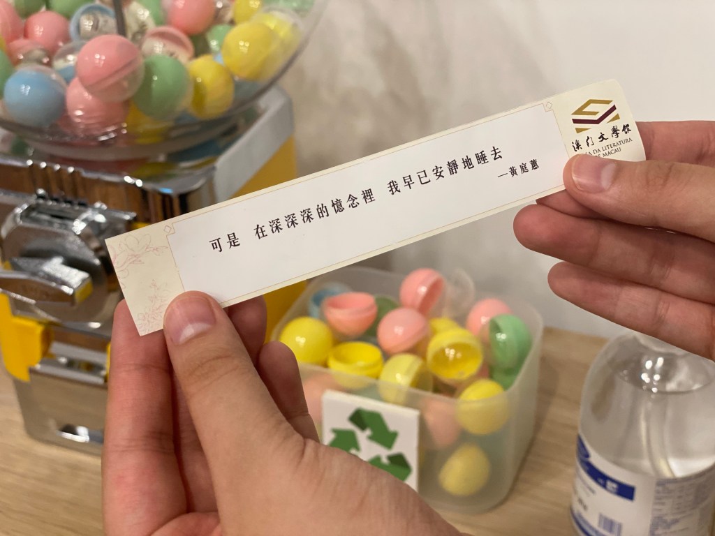 閱覽室除了本地的文學書籍外,也有過往本澳文學刊物的影印本,讓我們從中感受到時代的氣息。室內更設有多種互動遊戲,其中有詩籤櫃,可以求出與你最有緣份的詩句,又或者可以向接待人員索取代幣,用糖果機抽出一句屬於你的澳門詩句,把它記誦下來,讓澳門文學滲透在你的生活中……