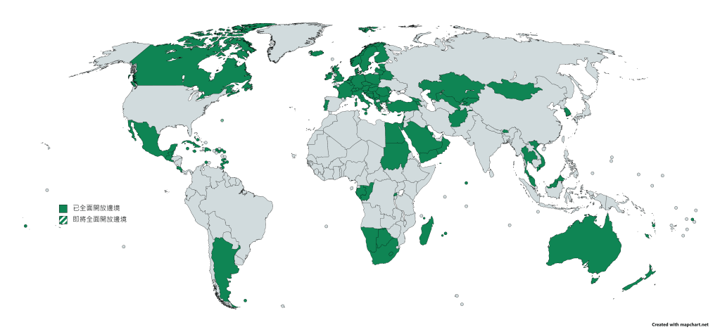 至今全球已經撤銷入境防疫限制的國家和地區,分別是: