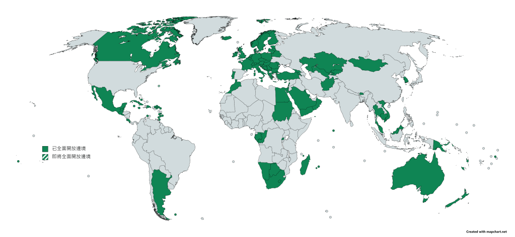 至今全球已經撤銷入境防疫限制的國家和地區,分別是: