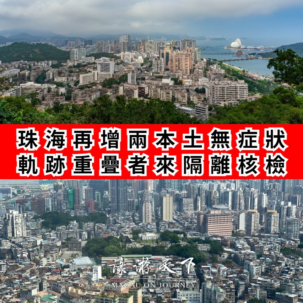 珠海市衛生健康局通報,截至今日中午12時,珠海新增本土新冠病毒兩名無症狀感染者,為一對夫婦,在外省來珠人員排查中發現。兩人本月4日從外省自駕車到達珠海,昨日核酸檢測陽性。