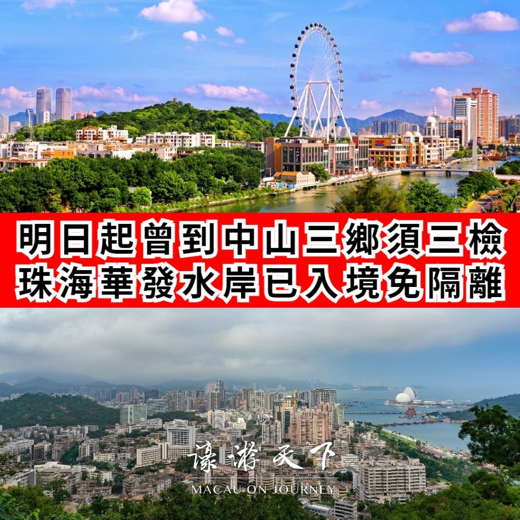 其中取消曾經到珠海南屏華發水岸32棟已入境人士的隔離要求,而曾經到中山三鄉的人士應立即主動接受一次核酸及在隨後的兩日內再接受兩次新冠病毒核酸檢測。