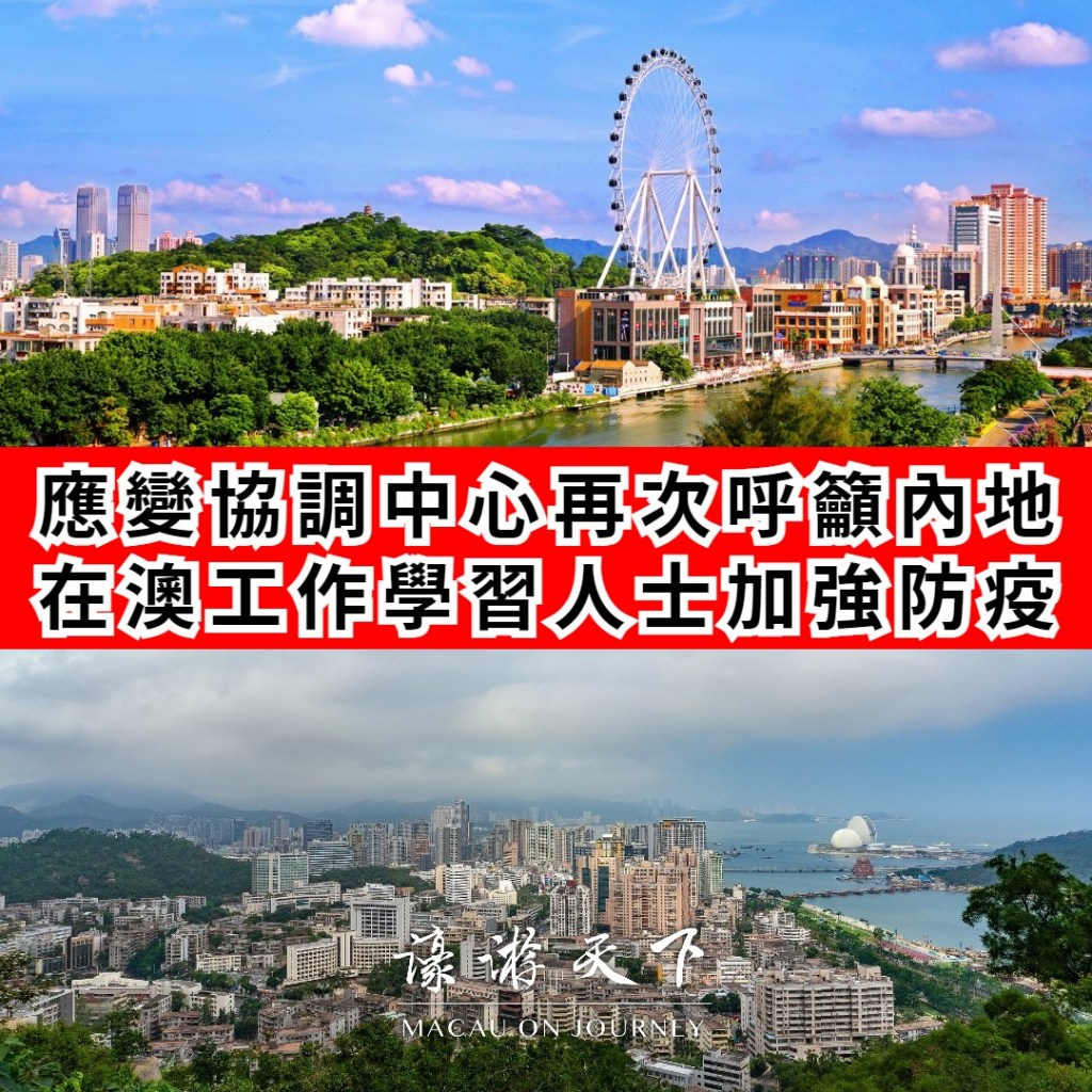 因應廣東省珠海市及中山市近日疫情的發展,新型冠狀病毒感染應變協調中心再次呼籲居住在內地於本澳工作和學習的人士,應做好個人防護措施,每日出門前進行一次快速抗原檢測。