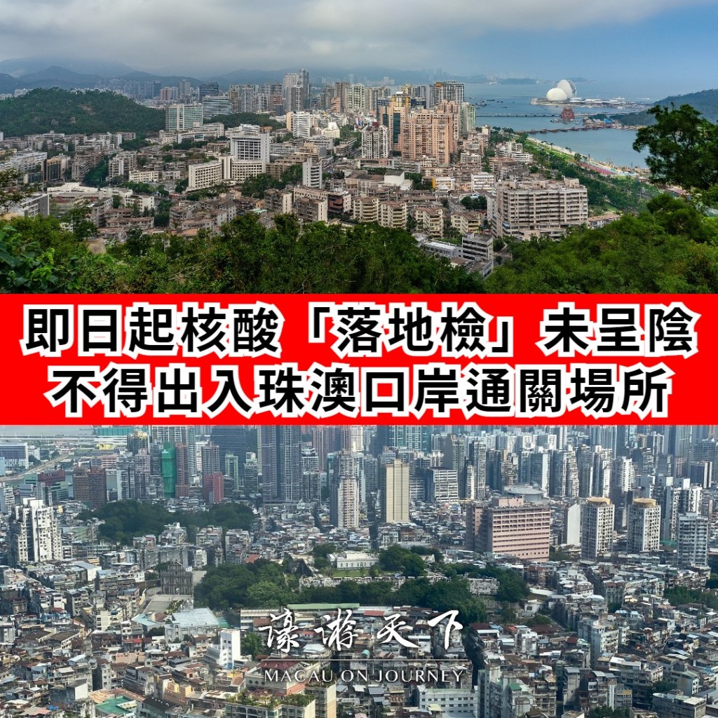 珠海市新冠肺炎疫情防控指揮部宣佈,經珠澳聯防聯控機制協商一致,即日起所有人員在珠澳兩地核酸「落地檢」陰性結果未出前,不能出入珠澳口岸通關場所。