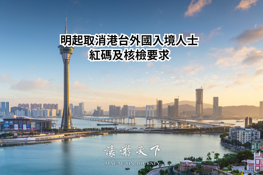 本澳明日凌晨零時起取消香港、臺灣及外國入境人士落地核酸檢測、澳門健康碼為「紅碼」及入境翌日起計第三日接受核酸檢測。入境後翌日起連續五日上載快速抗原檢測陰性結果,第五日澳門健康碼轉為「綠碼」。