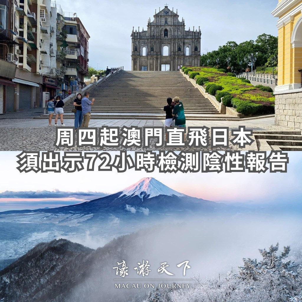 日本外務省今日宣佈,自本月12日(星期四)起,來自澳門的旅客須出示72小時內新型冠狀病毒核酸檢測陰性報告。