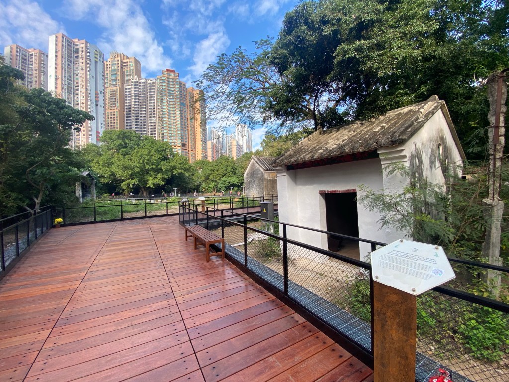 沿住遊徑漫步,細葉榕、假菩提樹、樟樹成蔭,又有水池、河涌,唔係當中嘅石屋,你可能會以為呢度係個大公園。打開各石屋介紹牌附有嘅二維碼,就可以了解當年炮竹的生產過程,以及工人冒住生命危險工作嘅情況。如果大家喺官也街行得攰,呢度都係一個好舒服嘅休息地方。