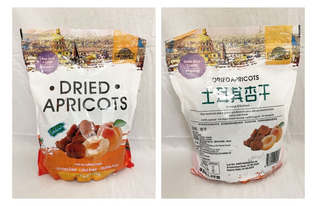 未能通過檢測的預包裝杏脯,產品牌子為:HAZARBEY,原產地為土耳其,產品批號:440076595/1-51-14 ,生產日期:01.06.2022,有效日期:01.09.2023。該產品被驗出每公斤含35.7毫克的環己基氨基磺酸鹽,以及每公斤含11.6毫克的糖精。根據第12/2018號行政法規《食品中甜味劑使用標準》的規定,環己基氨基磺酸鹽及糖精為允許使用的甜味劑,但並不適用於該食品類別。