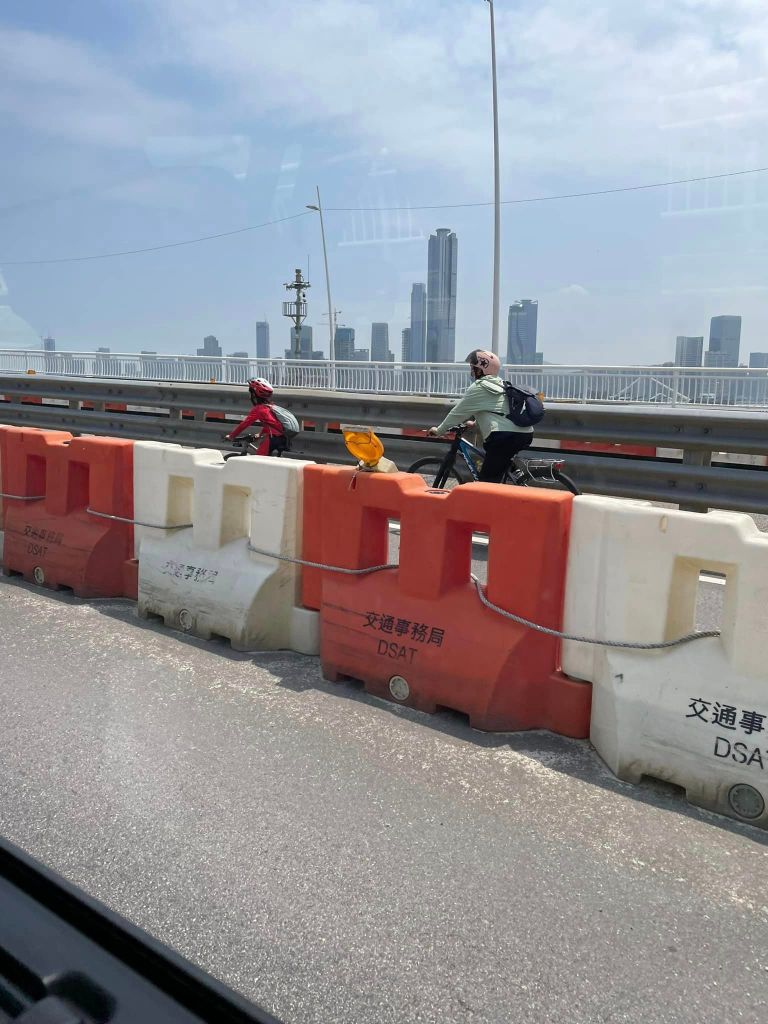 另外有網民在社交網站發佈一段影片,有五名人士推著單車穿過友誼大橋氹仔橋口,再進入連接日昇樓及友誼大橋的道路。