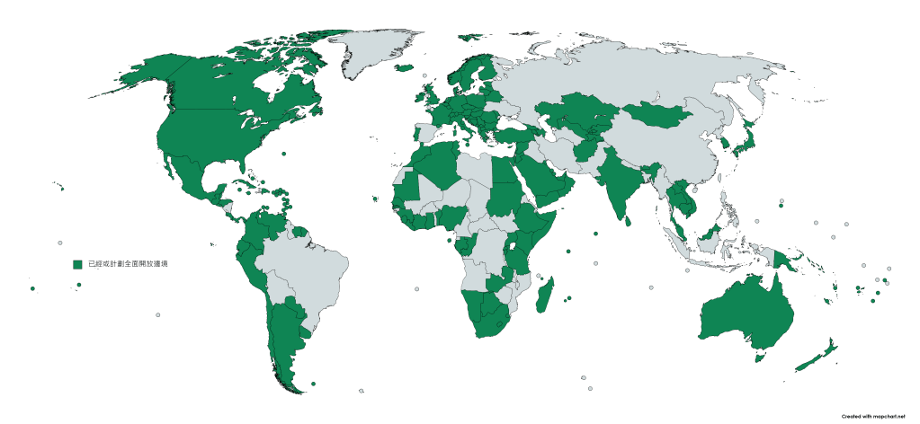 至今全球已經撤銷入境防疫限制的國家和地區,分別是: