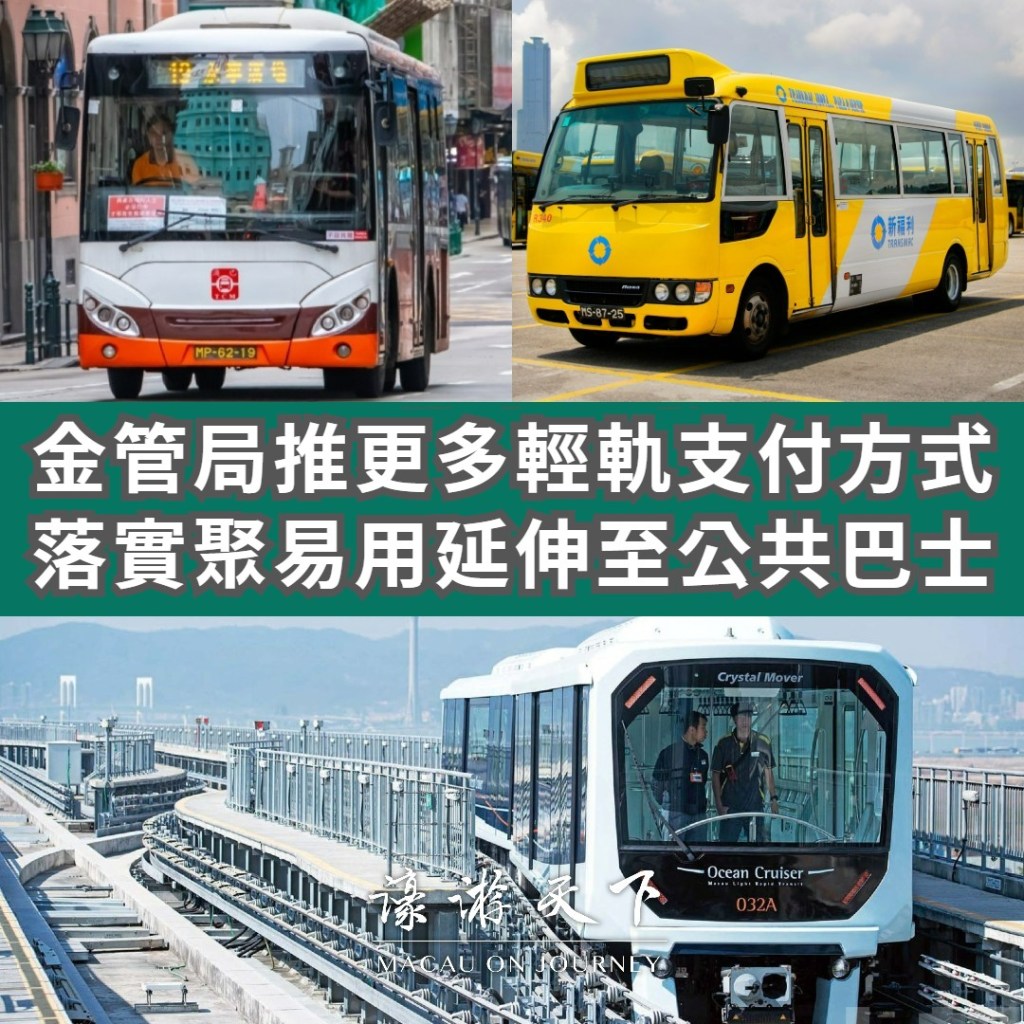 澳門輕軌表示將配合政府的政策及安排,透過優化輕軌票務系統和引入多元的電子支付方式,為乘客提供更便捷的乘車體驗。另外金融管理局表示,正協調金融機構有序落實「聚易用」支付體驗延伸至公共巴士場景的一系列準備工作。