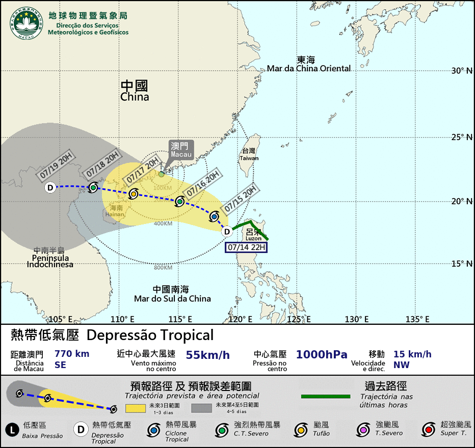 未分類 本年首個熱帶氣旋趨近本澳 一號風球現正生效 2023-07-14 濠遊天下 macauonjourney 發佈留言 氣象局於晚上十時半發出一號風球。 在晚上十時熱帶低氣壓,即本年度第四號熱帶氣旋,集結在本澳東南約 770 公里。 分享此文: Share on X(在新視窗中開啟) X 分享到 Facebook(在新視窗中開啟) Facebook 喜歡 正在載入...