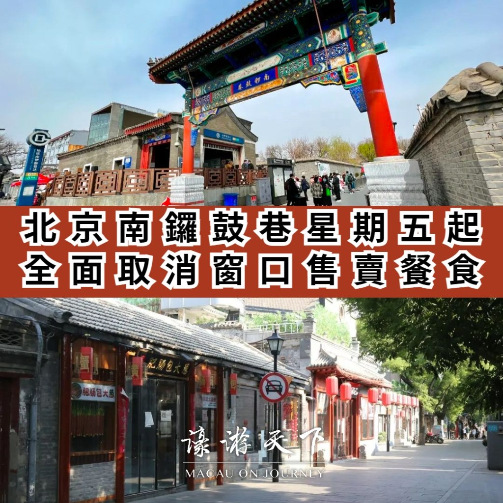 首都北京舊城區著名的街區南鑼鼓巷的食肆,星期五起全面取消在臨街窗口售賣餐食,改為室內銷售,遊客可以堂食就餐。