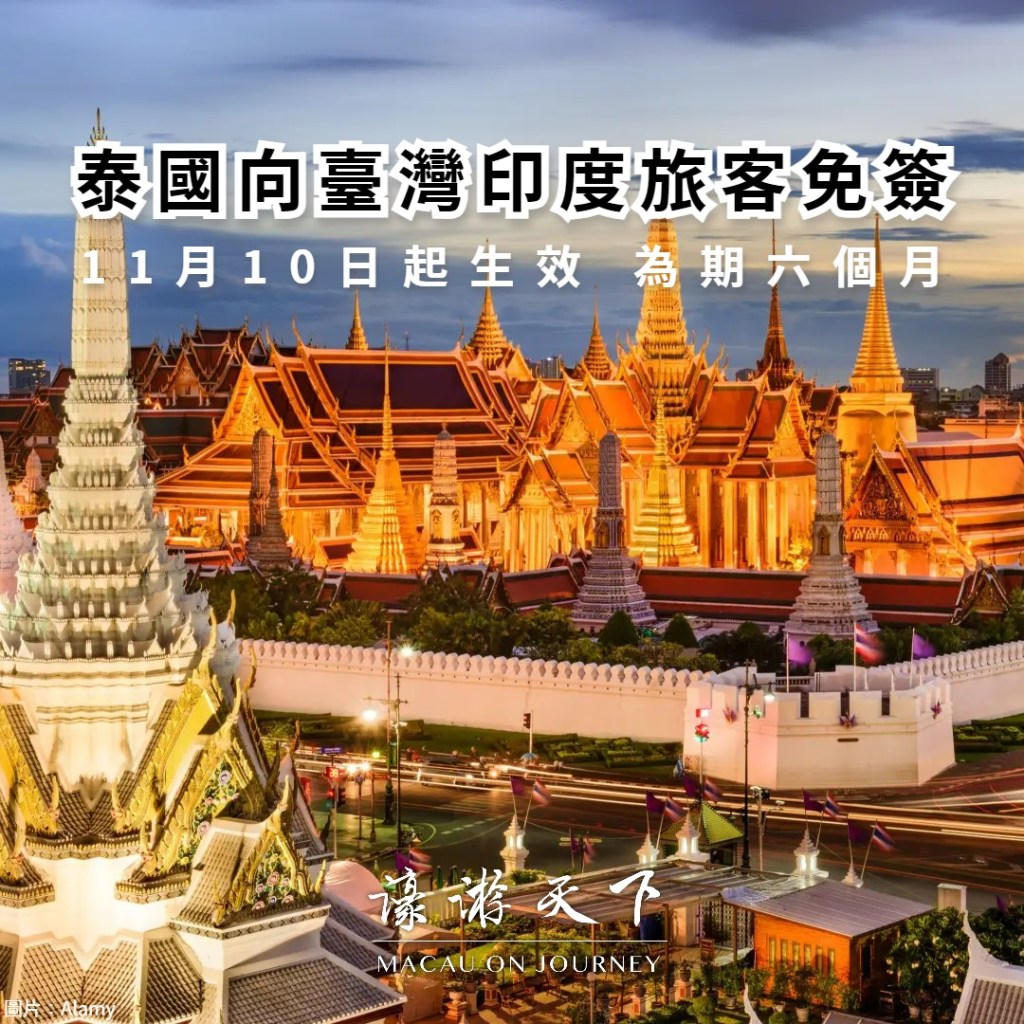 泰國政府繼九月向中國內地及哈薩克旅客開放免簽證入境後,今日又宣佈11月10日起至明年5月10日向臺灣地區及印度旅客提供最多三十日免簽證入境待遇。