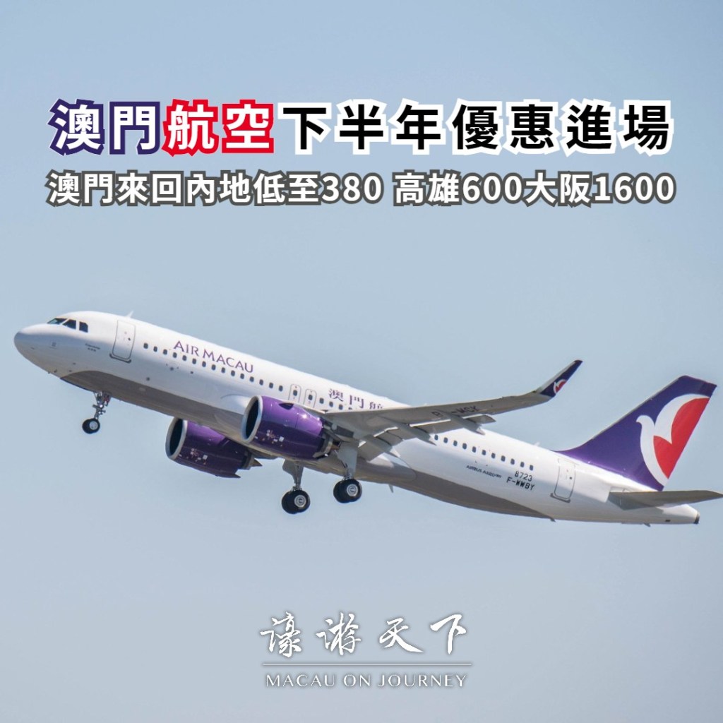 澳門航空今日起推出新一輪優惠,內地精選航點來回票價低至380澳門元,國際線大阪也低至1,600元。值得注意的是這次優惠旅行日期至今年十月底,意味這次是澳航今年下半年第一波優惠。