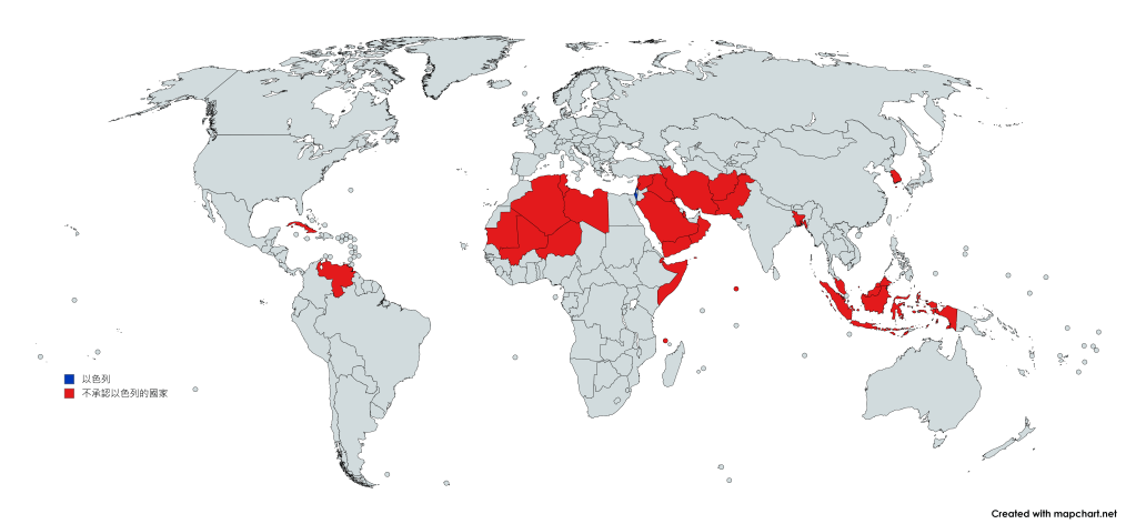 目前聯合國193個成員國之中,有二十八個國家不承認以色列,當中二十五國家是伊斯蘭或穆斯林為主的國家。除馬爾代夫外,全球尚有十六個國家禁止以色列公民入境,分別是阿富汗、阿爾及利亞、孟加拉、汶萊、伊朗、伊拉克、科威特、黎巴嫩、利比亞、馬來西亞、阿曼、巴基斯坦、卡塔爾、沙特阿拉伯、敘利亞和也門。