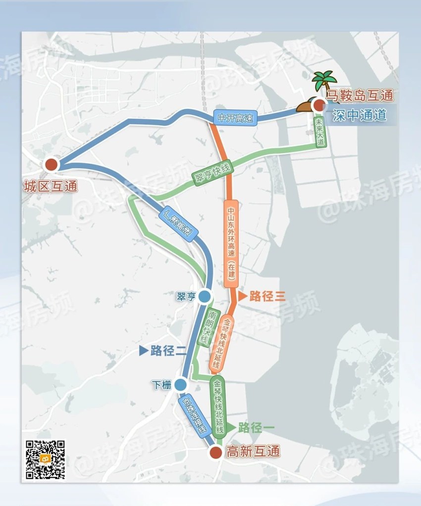 另外除路線一外,路線三中將開通的中山東外環高速南延段,未來還將大幅縮短珠海到深中通道上橋口的時間。