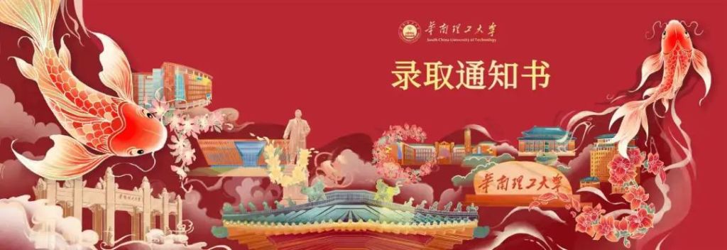 錄取通知書外盒由華南理工大學「廣橫走」學生團隊設計,以莊重大氣的紅色為基調,以鯉魚遊弋於四時之華為靈感源泉,寓意華園萌新鯉躍龍門、前程似錦。