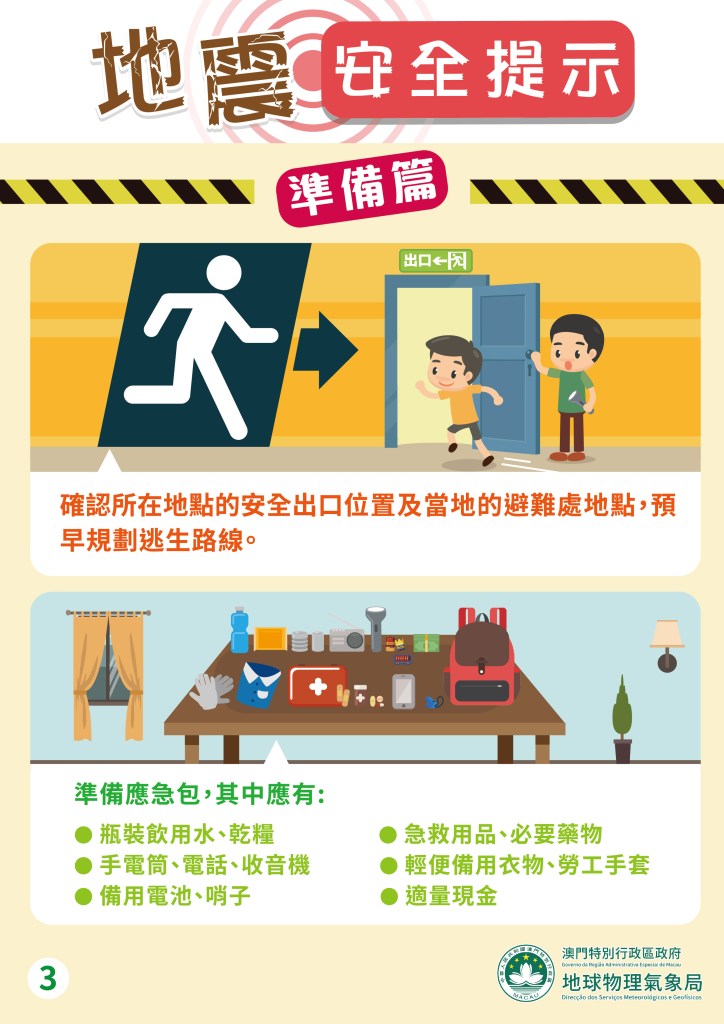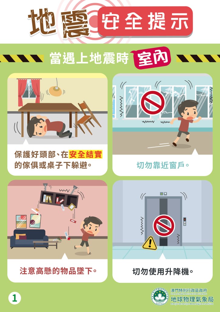 雖然不同城市的防災措施可能有所不同,但由於其形成原理一般相近,因此,市民倘遇到地震或海嘯,仍可參考以下避險措施,以保障自身安全: