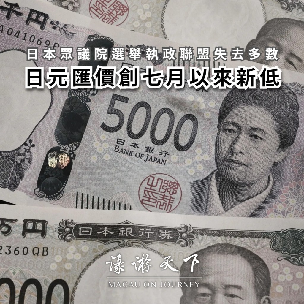 日本自民、公明執政聯盟在星期日舉行的眾議院選舉中喪失了多數優勢。日元匯價創七月以來的新低。