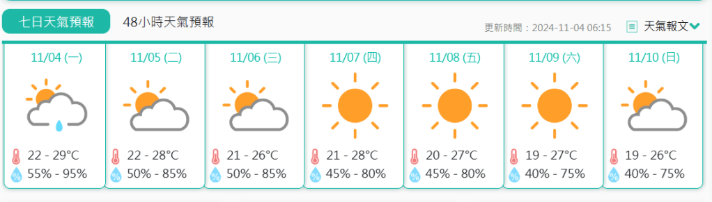 另外氣象局預測,受一股東北季風影響,今日本澳天氣為多雲,短暫時間有陽光,初時有微雨。從星期四起轉為天晴,星期六最低溫度更將會跌至攝氏19度。