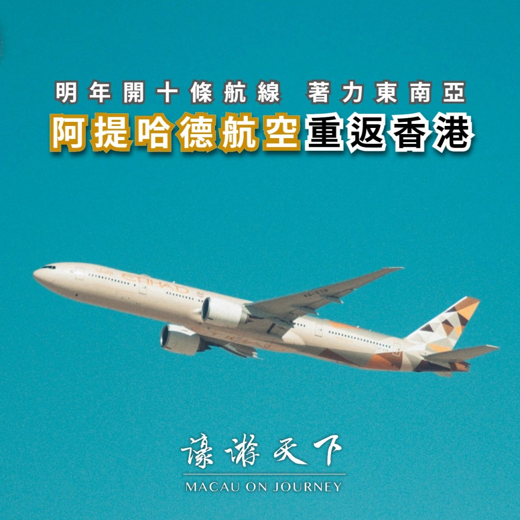 在航空業界被譽為「中東三寶」之一的阿提哈德航空,是在2020年2月受疫情影響暫停了香港航線,不過在這次計畫中得以復航。航線將於明年11月3日起復飛,每周五班,選用波音787客機。屆時「中東三寶」三家公司都將再度有往返香港的航班。