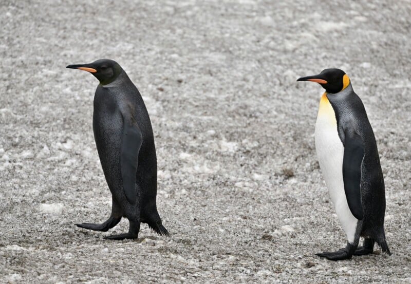 企鵝罕見的顏色是由於一種叫做黑色素的物質。當動物產生過多的黑色素時,這會導致皮膚或羽毛比正常情況更黑。