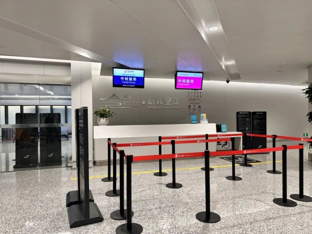 1.飛機抵達杭州後,根據到達指示牌行至中轉區域\