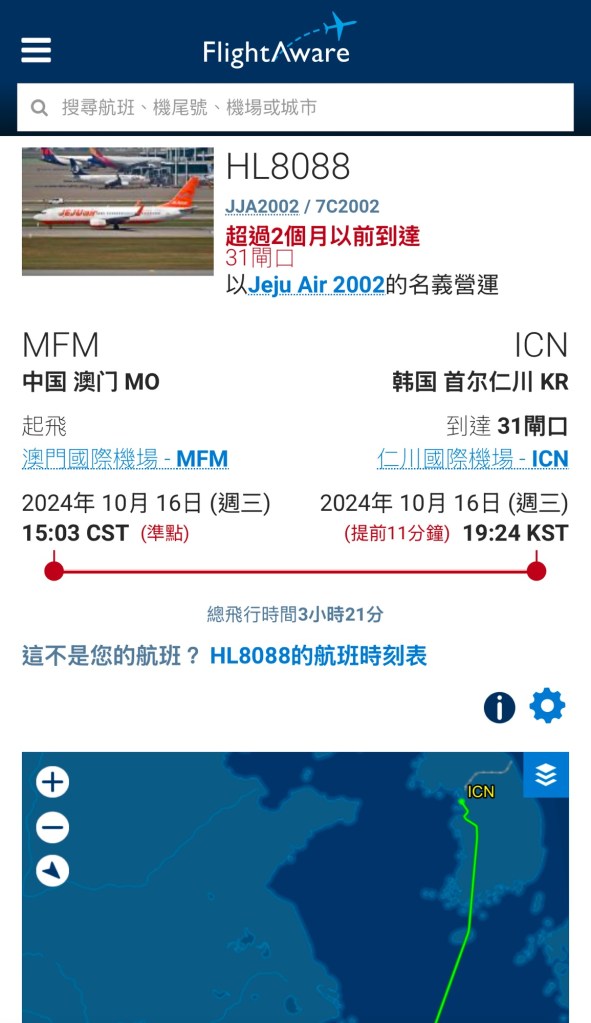 不過當地媒體引述事發前兩日乘坐同一架客機的乘客指,客機起飛時引擎曾經熄火,延誤一個多小時後公司仍然照常起飛。客機在昨日曾經飛行過來往台北桃園的航班,原訂今日將飛行來往北京的航班。另外根據本地航空愛好者觀察,出事客機曾多次執行來往澳門的航班。而根據航班追蹤網站Flightaware顯示,最後一次離開澳門是今年10月16日,前往首爾仁川。