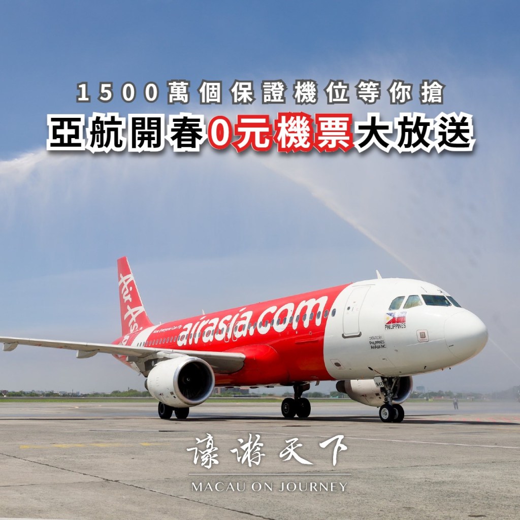 AirAsia 0元機票及BIG SALE將於本澳時間今日中午十二時正式開始(預先登記成為AirAsia MOVE member更可於今日中午十二時前享優先購票優惠)。旅客可於2025年2月23日之前通過 airasia.com 或 AirAsia MOVE應用程式預訂,適用於出發日期為2025年7月1日至2026年6月15日的旅行。旅客在購買機票時同時加購超值套裝(包含20公斤托運行李限額、機上餐飲和標準座位選擇)更可享八折優惠。