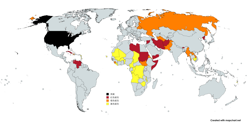 《紐約時報》引述知情官員透露,上述國家分為紅、橙、黃三級,分別代表完全禁止入境、大幅限制入境,以及不在六十日內解決問題升級的類別。