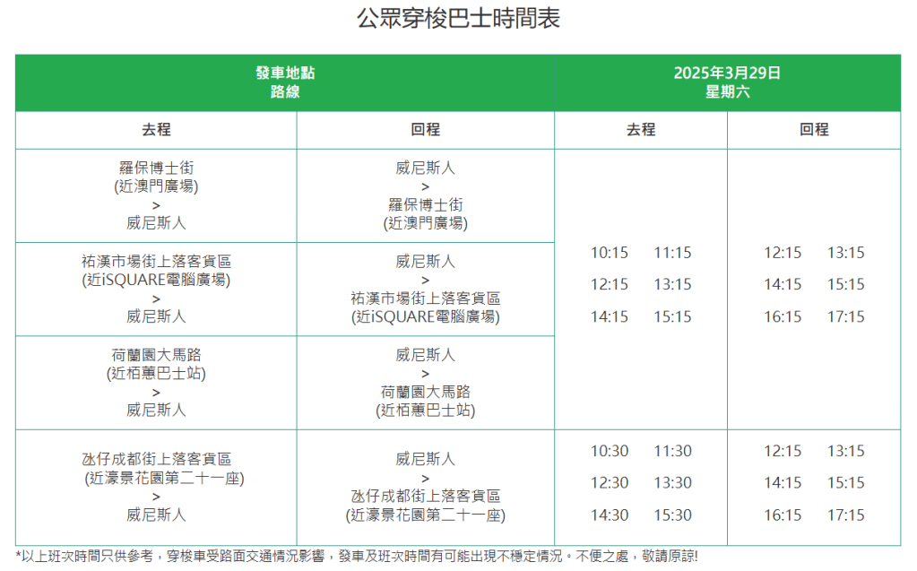 交通:四條免費純電動穿梭巴士路線往返澳門中區、北區及氹仔到會場