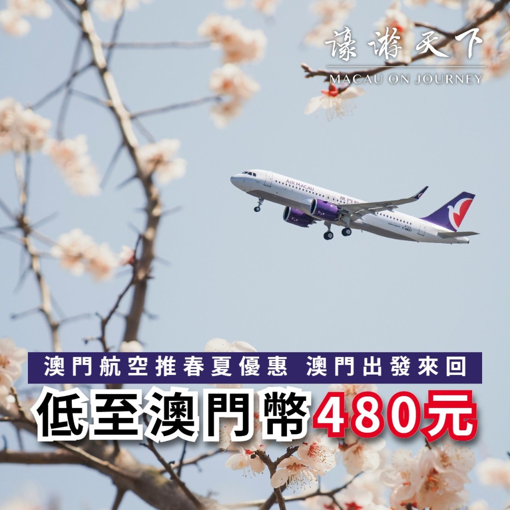 澳門航空即日起推出春夏特別優惠。澳門出發來回機票低至澳門幣480元。